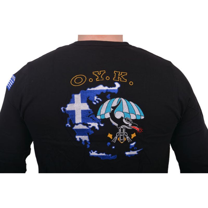 Μπλούζα εξαιρετικής ποιότητας, με κέντημα των Ο.Υ.Κ στο στήθος και στην πλάτη και με κεντημένη