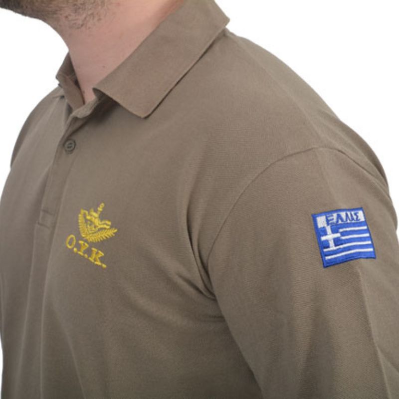 EAGLE Polo Μακρυμάνικο Κέντρο Εκπαιδεύσεως με Κέντημα Χακί Ανοιχτό