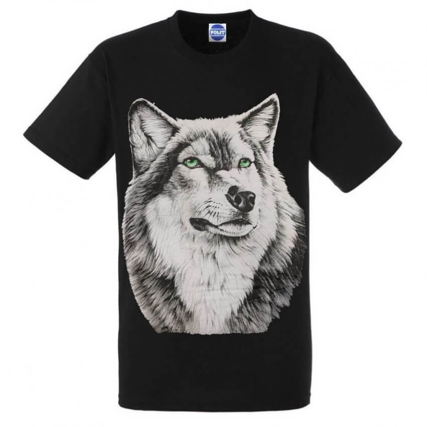 - Σχέδιο (Β): Μπλουζάκι Μαύρο με Στάμπα Wolf της POLIT Βαμβακερό 100%.