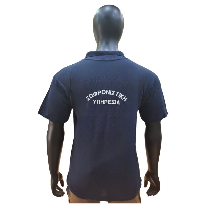 Με γιακά και τρία κουμπιά κοντό μανίκι με κέντημα ΣΩΦΡΟΝΙΣΤΙΚΗ ΥΠΗΡΕΣΙΑ μπρος και πίσω.