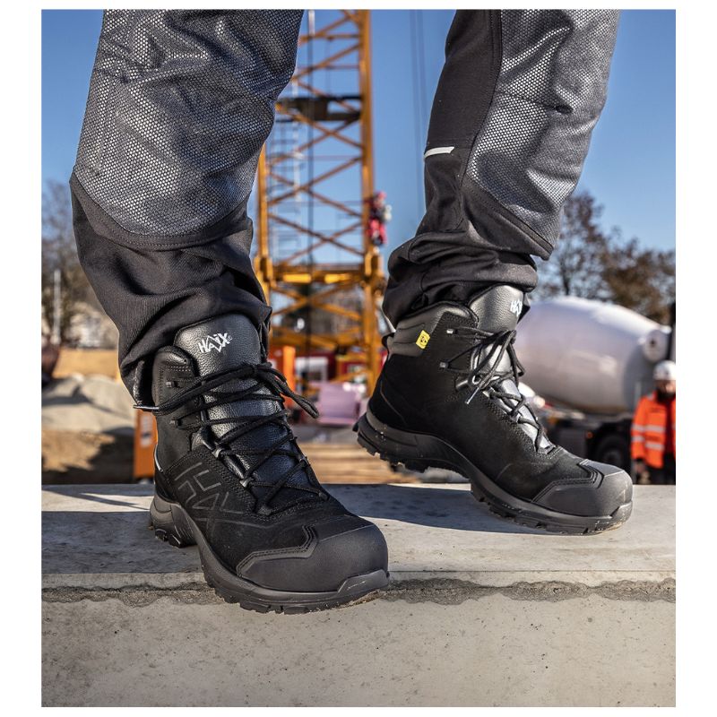 Τα μποτάκια ασφαλείας HAIX Black Eagle Safety 610 V συνδυάζουν ελαφριά κατασκευή, υψηλή προστασία και κορυφαία άνεση για απαιτητική καθημερινή εργασία. Διαθέτουν μεμβράνη GORE-TEX® για πλήρη αδιαβροχοποίηση και διαπνοή, ενώ το υδροαπωθητικό suede δέρμα υψηλής ποιότητας προσφέρει φυσική άνεση και μεγάλη αντοχή στον χρόνο. Παράλληλα, η αντιολισθητική σόλα υψηλής πρόσφυσης, η προηγμένη προστασία δακτύλων και η τεχνολογία XLR8 της HAIX μειώνουν την κόπωση και εξασφαλίζουν σταθερό και άνετο πάτημα όλη μέρα, με πιστοποίηση EN ISO 20345:2022+A1:2024 S7.