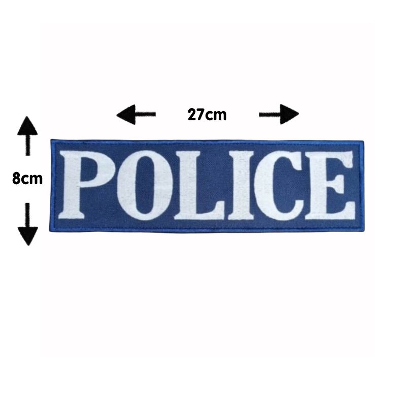 - Σήμα πλάτης Police σε μπλε χρώμα με λευκά γράμματα
